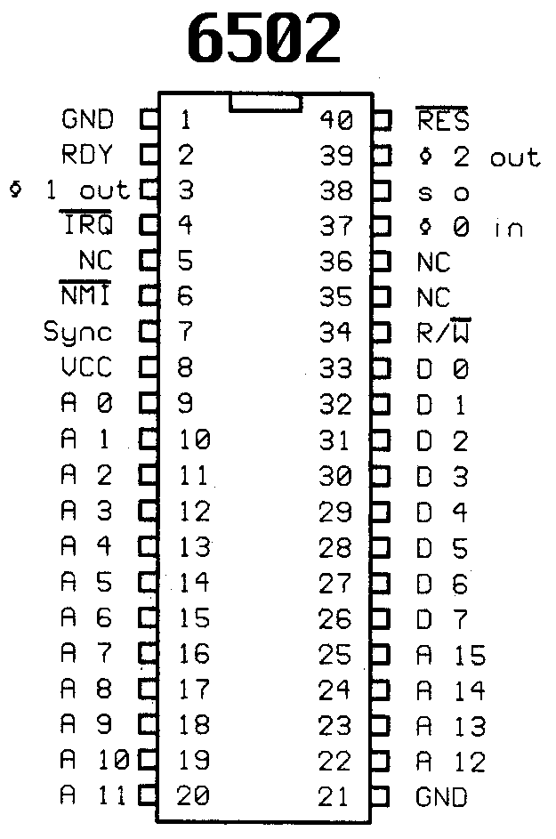 Bring GND to ground, bring VCC to 3.3V. 5V works also but (I assume to due to ringing) the 6502 does not always reset properly.
