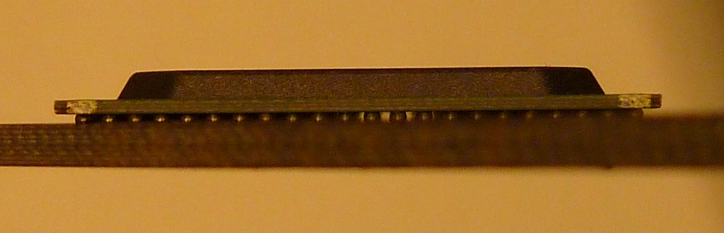Here is an edge view, showing how you can see underneath the chip. This gives you a pretty good indication that there are no shorts - you can see down the entire grid! I soldered down 3 of these BGAs perfectly.