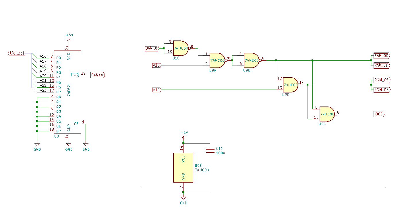 I've been trying to design a 65C816 computer for a while now and I'm running into some issues that I think go beyond a mistaken connection. I've sent two versions of this computer in for fabrication. The first board didn't work at all. The second board does work, but is unstable under certain conditions. Anyways, I'm starting to think my ideas on the glue logic and address decoding is flawed. For example, if I upload a program to RAM that will never use the EEPROM, it will still activate the EEPROM (briefly). So, running programs within the RAM tends to be unstable.