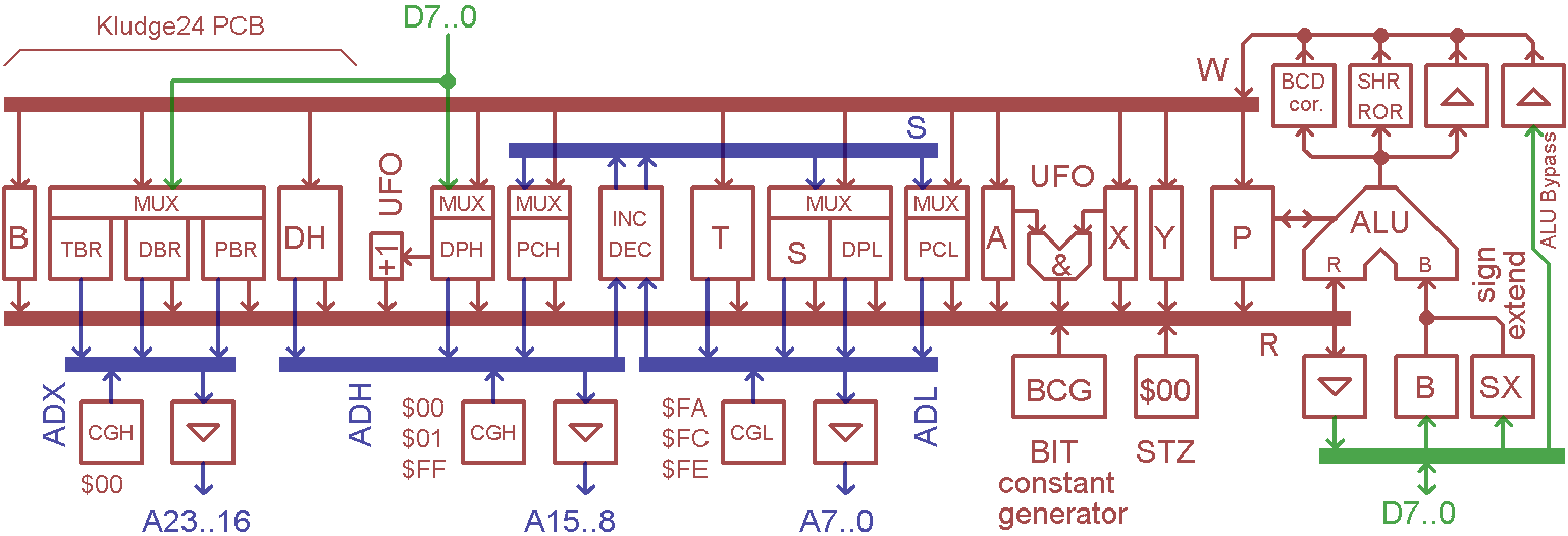 Conceptually, Kludge24 is sort of a "function block" to be attached to a "standart" 6502 core.