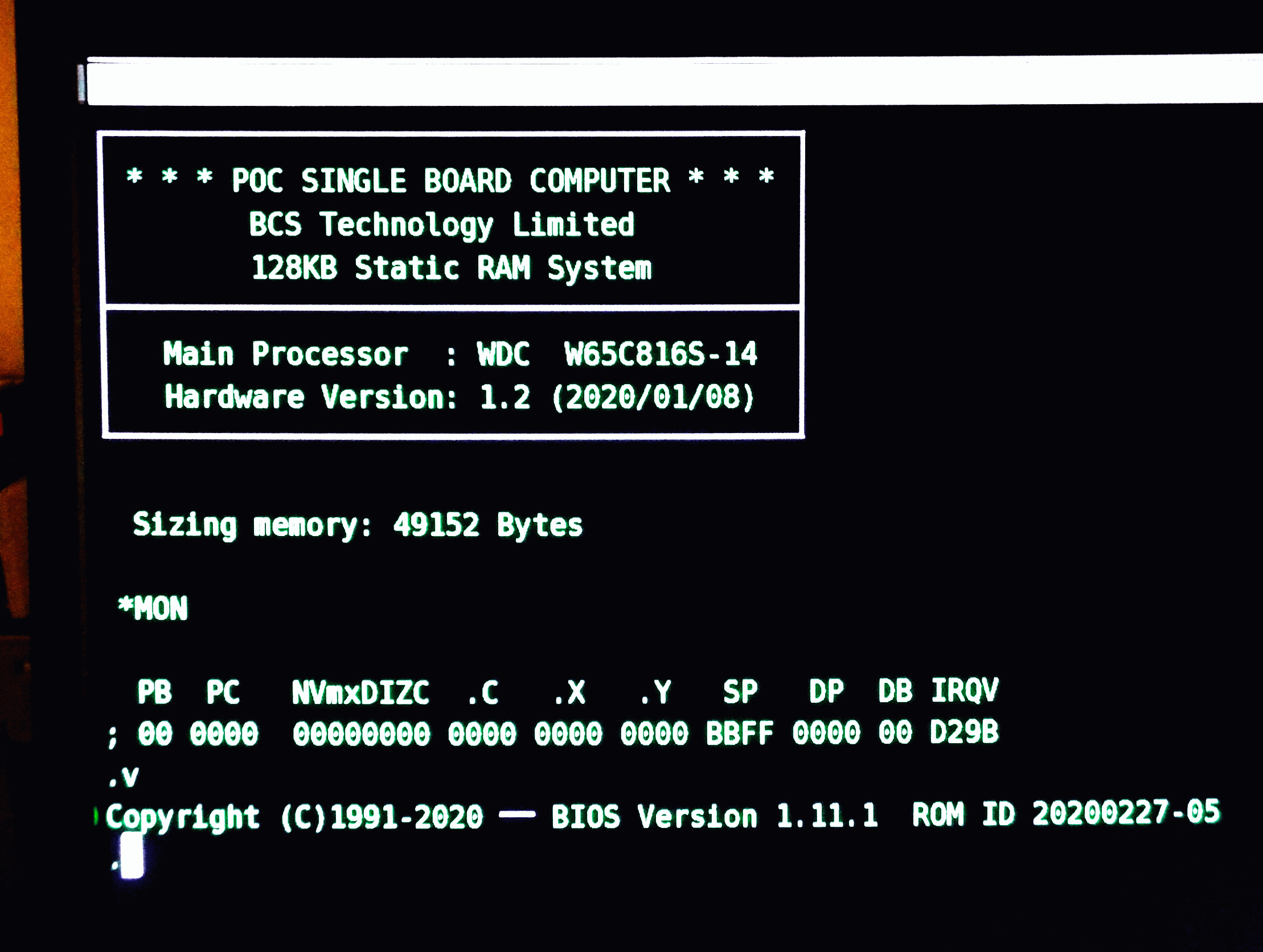 Otherwise, the unit is working fine and thanks to the downtime caused by COVID-19 and my strong desire to continue breathing, I am deep into redoing the firmware to convert from a jump table API to an API accessed using the COP software interrupt. The new firmware will also support all four serial channels, as well as have some new functions that will be useful when I do something boneheaded with software and semi-crash the machine. :D
