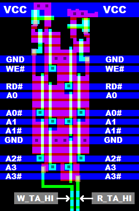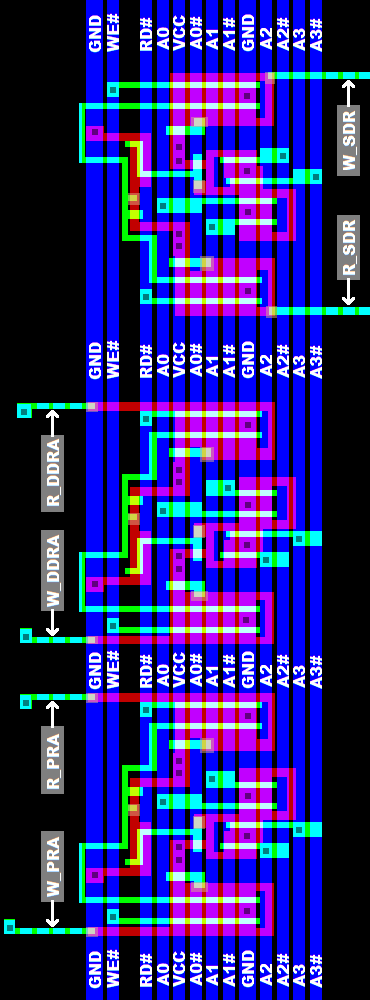 It also is fed with the high_active address signals A0..A3 and the low_active address_signals A0#..A3#,