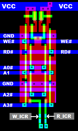 A NOR gate inside the counter blocks (with the individual transistors distributed