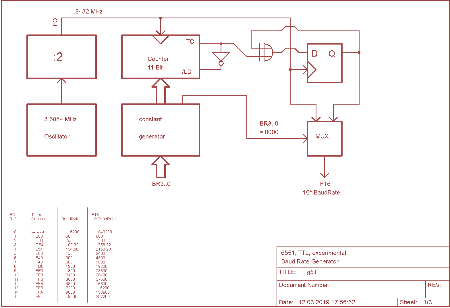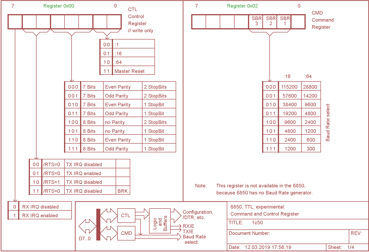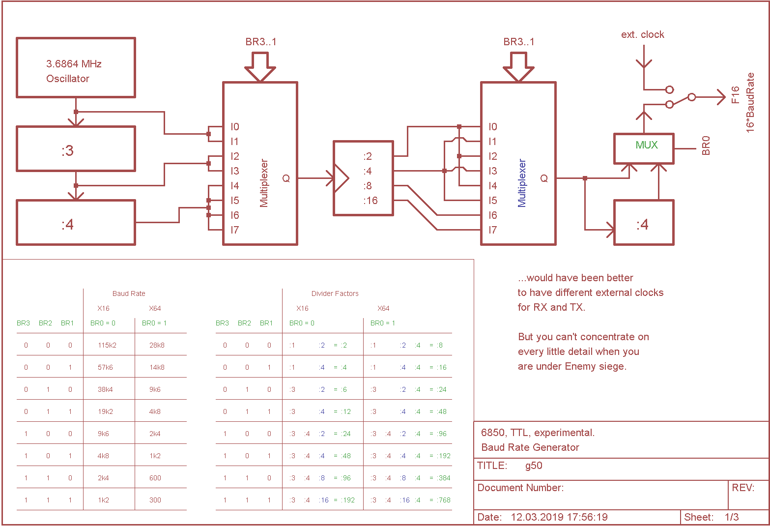 G50 baud rate generator module, TTL 6850 only: