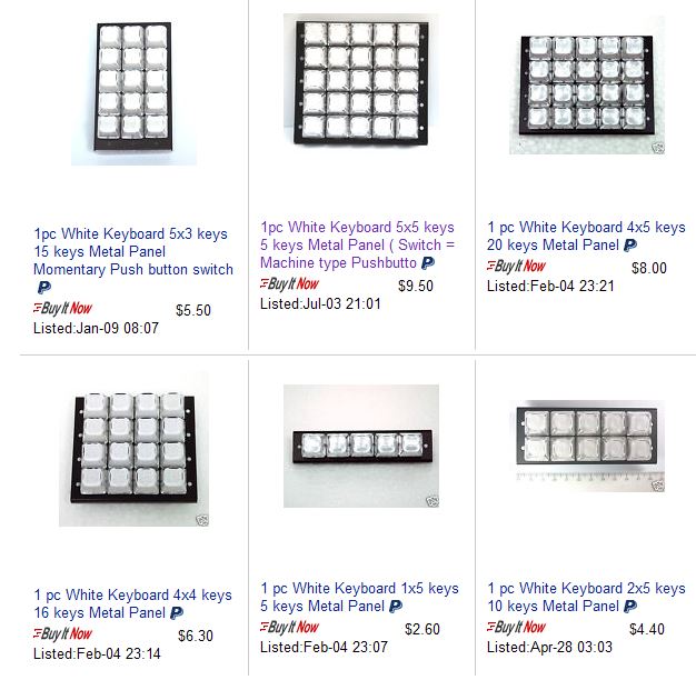 It's nice when they make them so you can stack them any way you like and put your own labels under the transparent key caps, as is possible with the types shown so far. Grayhill 87 comes in single keys, doubles, and on up, and you can stack them to get non-stocked array sizes. Edit: I see your added pictures in the head post now on the different sizes of key arrays on the other type as well.