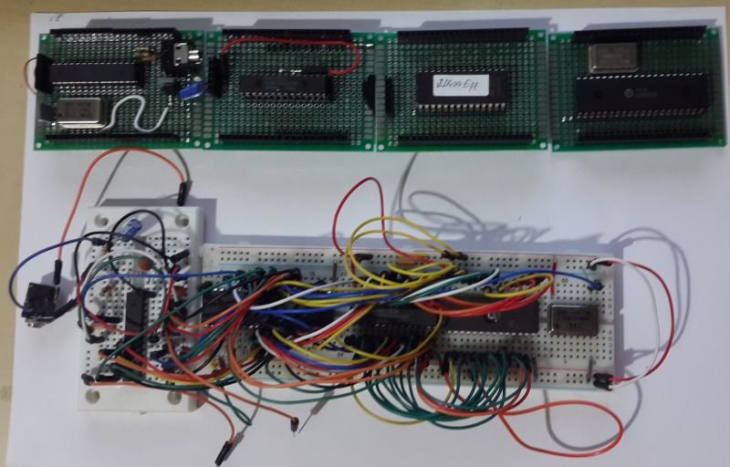 ps2: I fitted SRAMs one on the top of other. Either I'll upgrade in this prototype setup to more capacity sram or place them side by side since they take vertical space and not very usable currently. And I must admit, using sockets for ICs in this setup is not a good idea too. They also take vertical space.