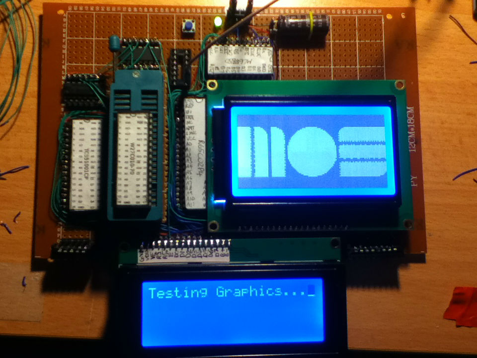 The character LCD is now wired directly to the data bus, and I have added the graphical LCD: