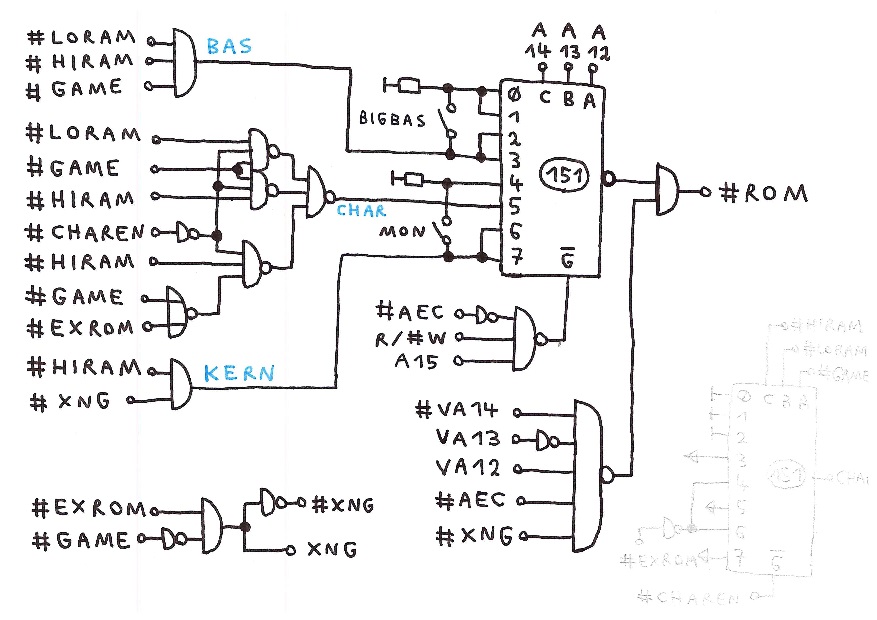 binary images of the ROMs in the C64, with only one chip select signal labeled #ROM.