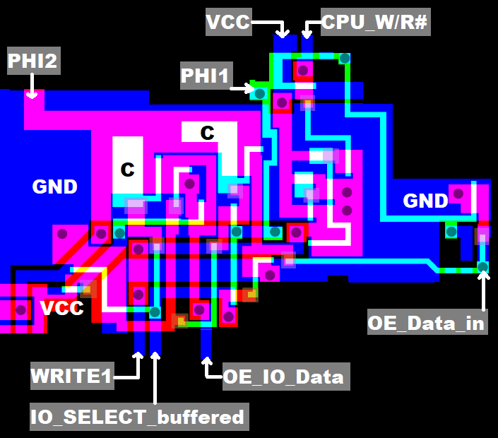 Said FET is present in the A1..A15 logic, together with the IO_SELECT metal trace