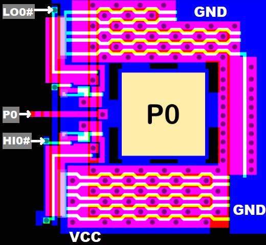 Note, that the ESD protection FET is not located close to the P0 pad.