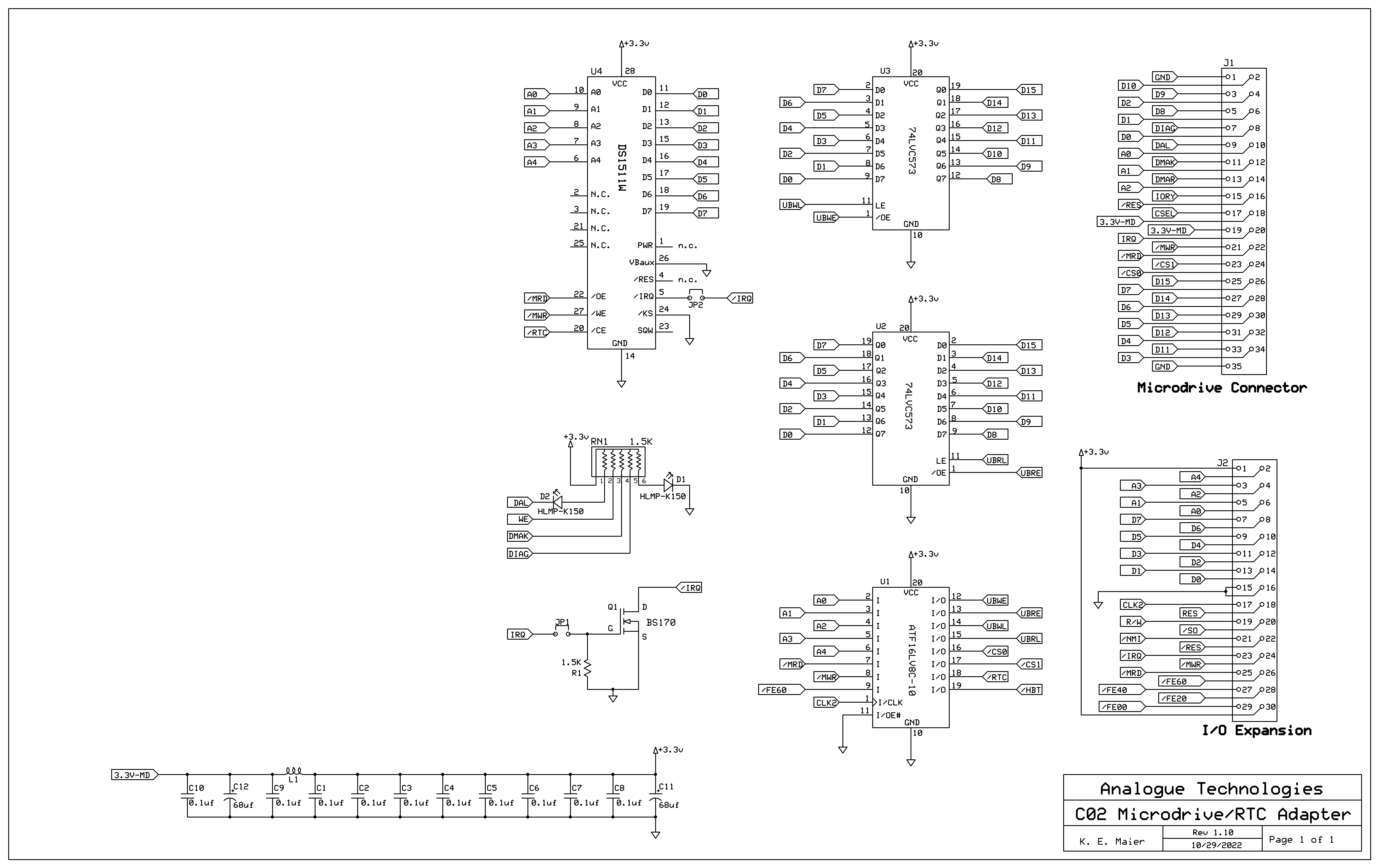 In looking over the second schematic page with the interface to the micro drive, it appears that reading or writing the device is a two-step process due to the 16-bit interface ATA bus. I’m inferring this from the presence of the two 573 latches. Is that correct? Can you edify your audience on how the interface works?