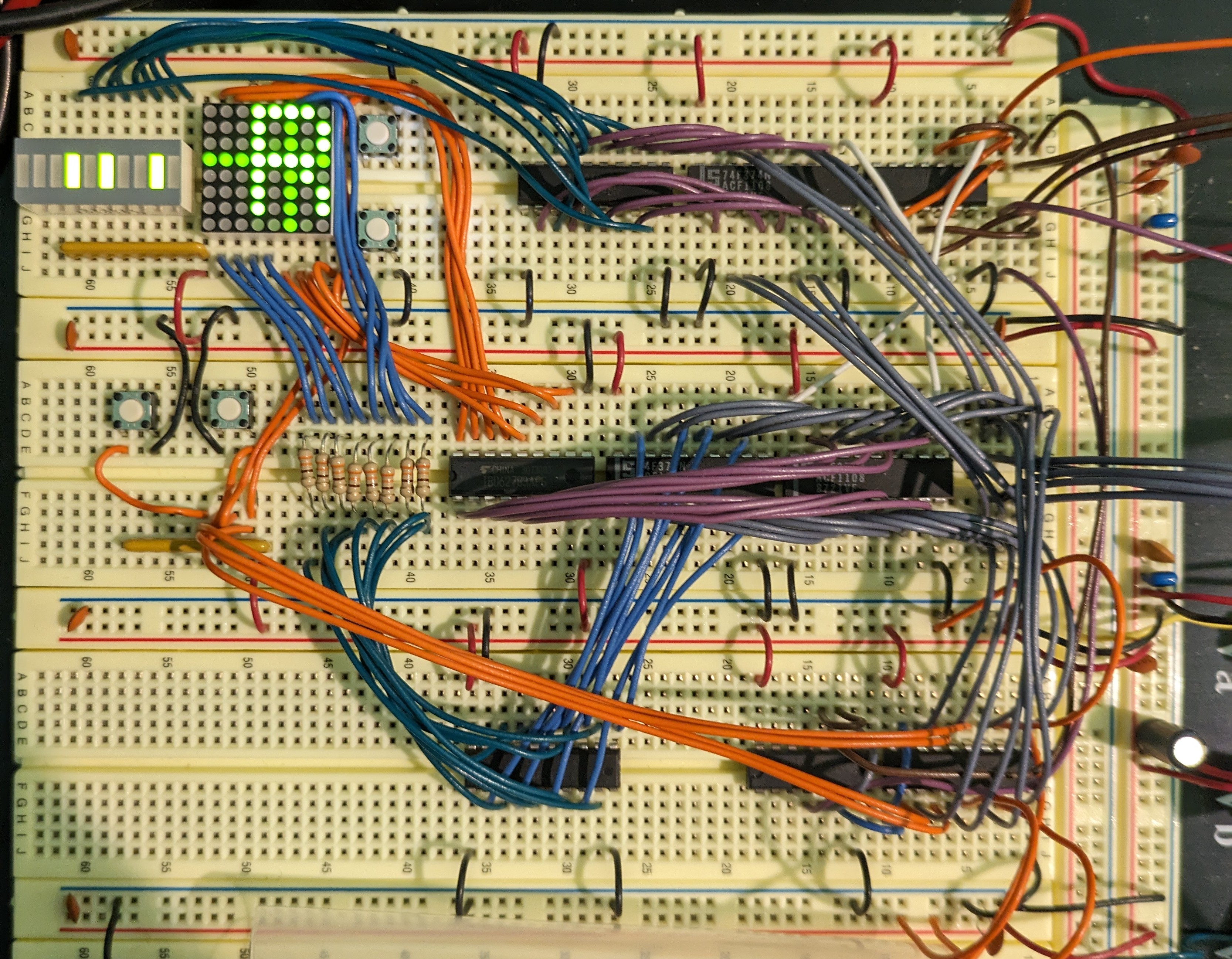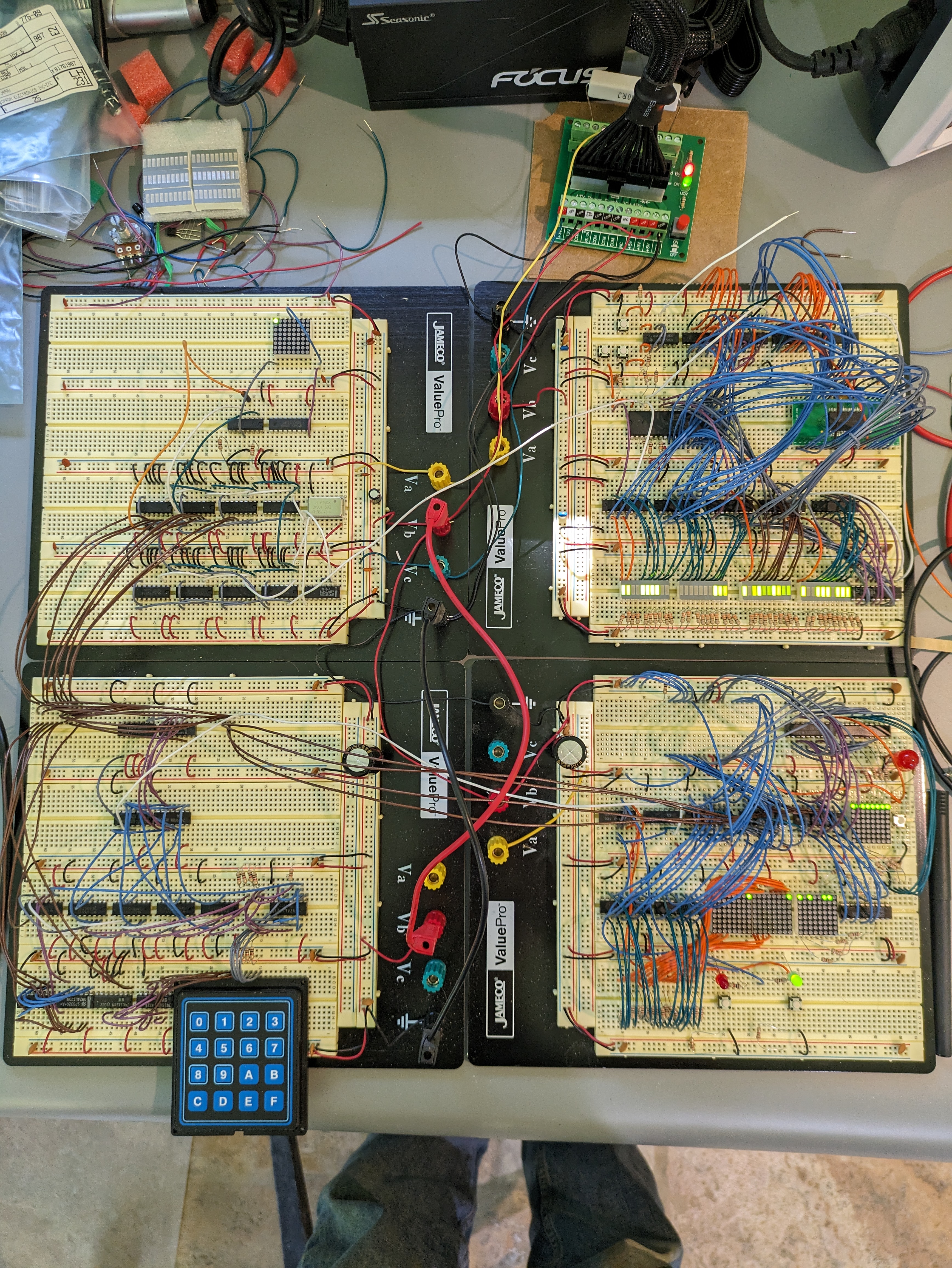 The hexadecimal keypad is definitely a step up from toggling switches for binary input! I'm really glad I took the time to design and build that. I would probably make it a bit easier to use given my experience now putting in the better part of a kilobyte of machine code...