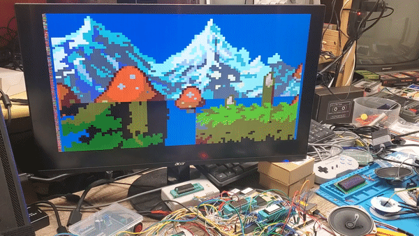 I never got around to making the video card portion of his designs yet. I was considering something like a double buffer approach as well as some DMA ideas. (To be honest I won't be happy till I get some good SNES style sprites working :mrgreen: )