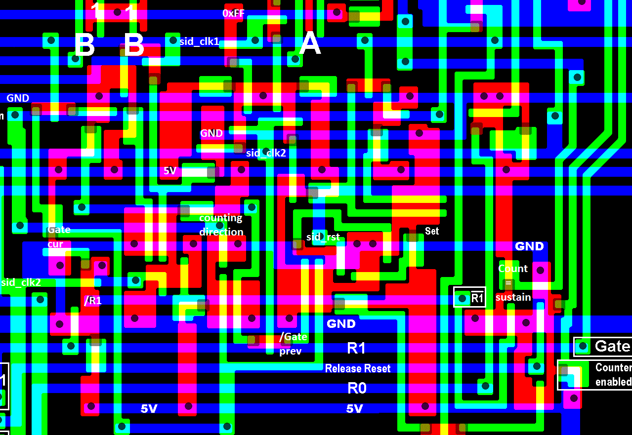 The envelope generator is also afflicted by some "bugs", like the counter wrapping when switching quickly between attack and release or the infamous ADSR-Bug [2], which may cause the attack of a note to start with quite a few cycles of delay after the gate is set.
