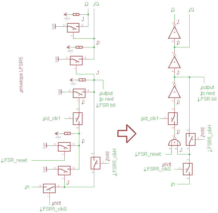 The LFSR5 counter is based on the circuitry we know from the LFST15 counter,