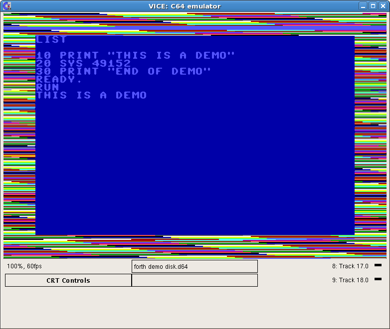 This short piece was saved with the metacompiler word TSAVE and loads at address $C000 or decimal 49152 ( an address familiar to Commodore 64 users who also programmed their machines ). The screen shot shows the short BASIC program that uses this routine. The screen shot was taken during the test. Yes it completed successfully. This has given me food for though about the metacompiler. Currently, the source is compiled with MLOAD or MTHRU but, writing MINCLUDE, a metacompiler version of INCLUDE will be easy to write but, there may be a better way. I'll have to go through the metacompiler code and clean it up and maybe rethink some of the metacompiler design.