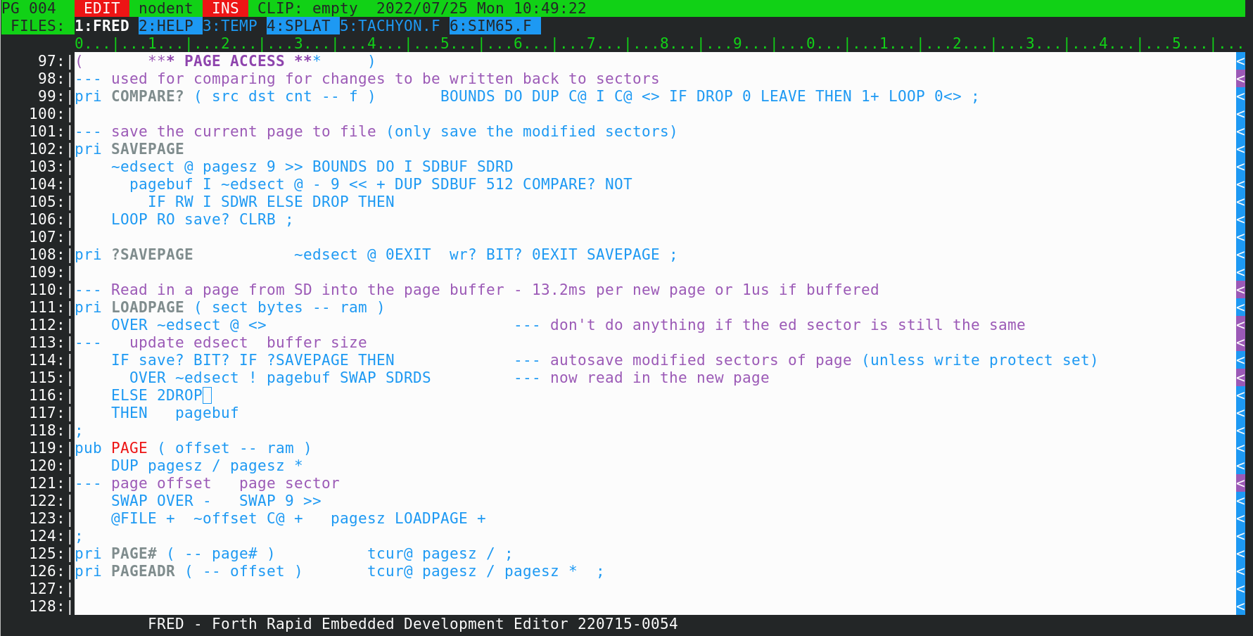 Suppose I want to compile NUTATE and test it. Since I defined the word ;COMMENT as a no-op and Fleet Forth has LINELOAD , I can.