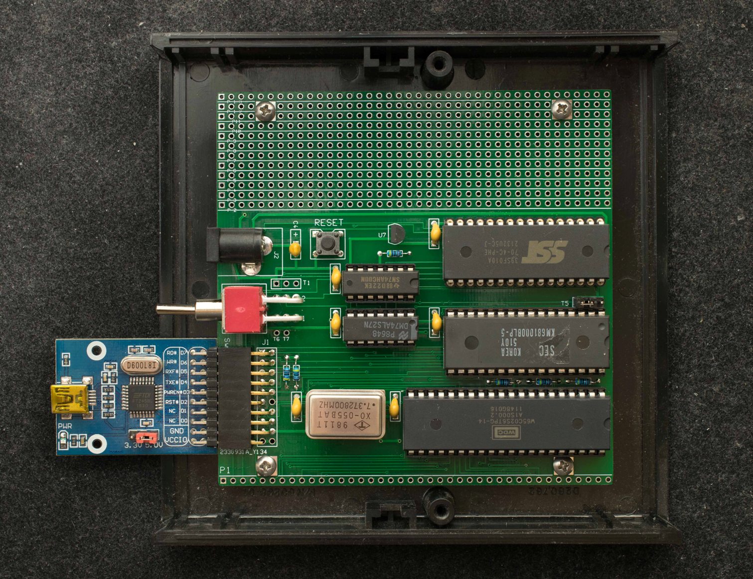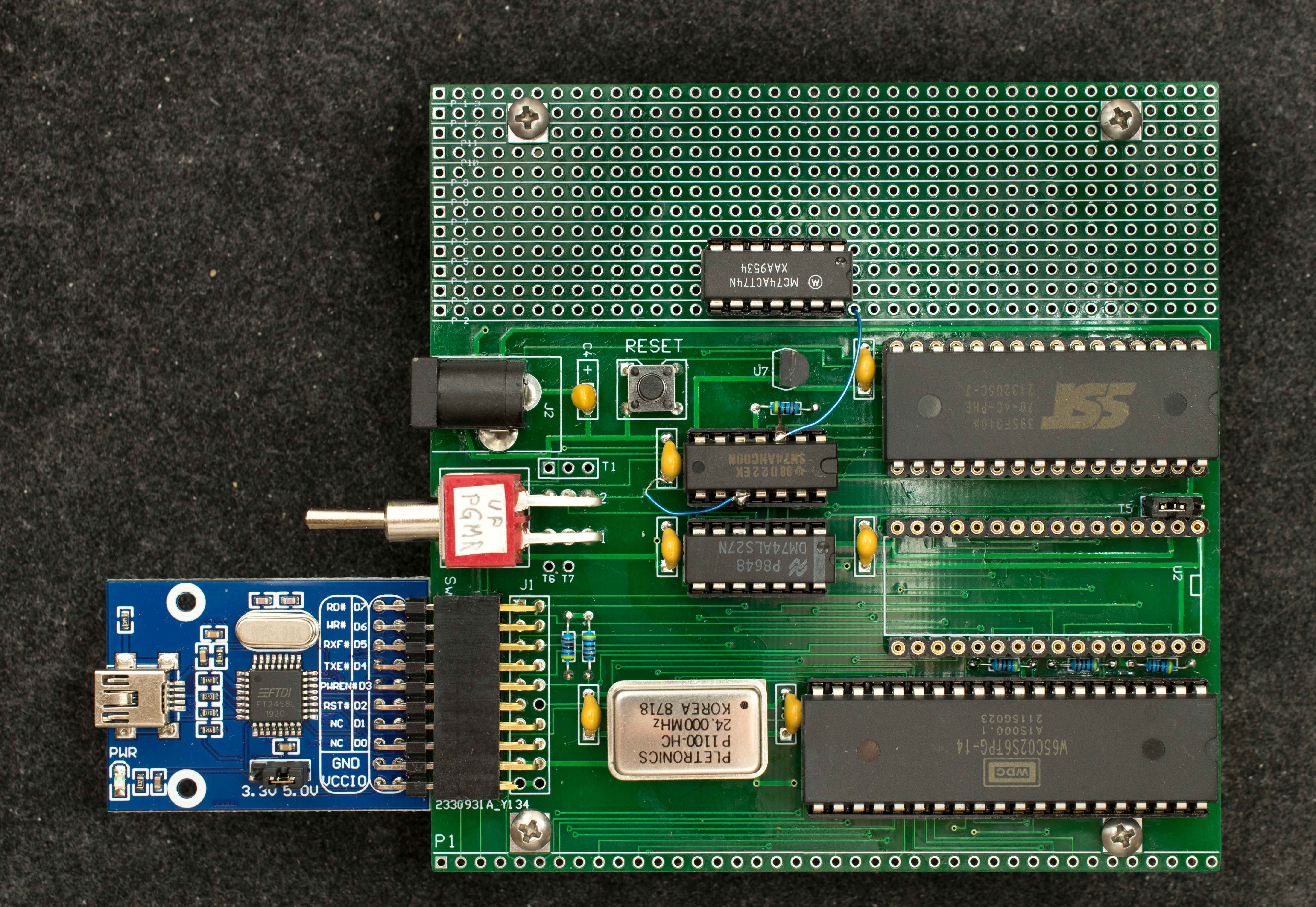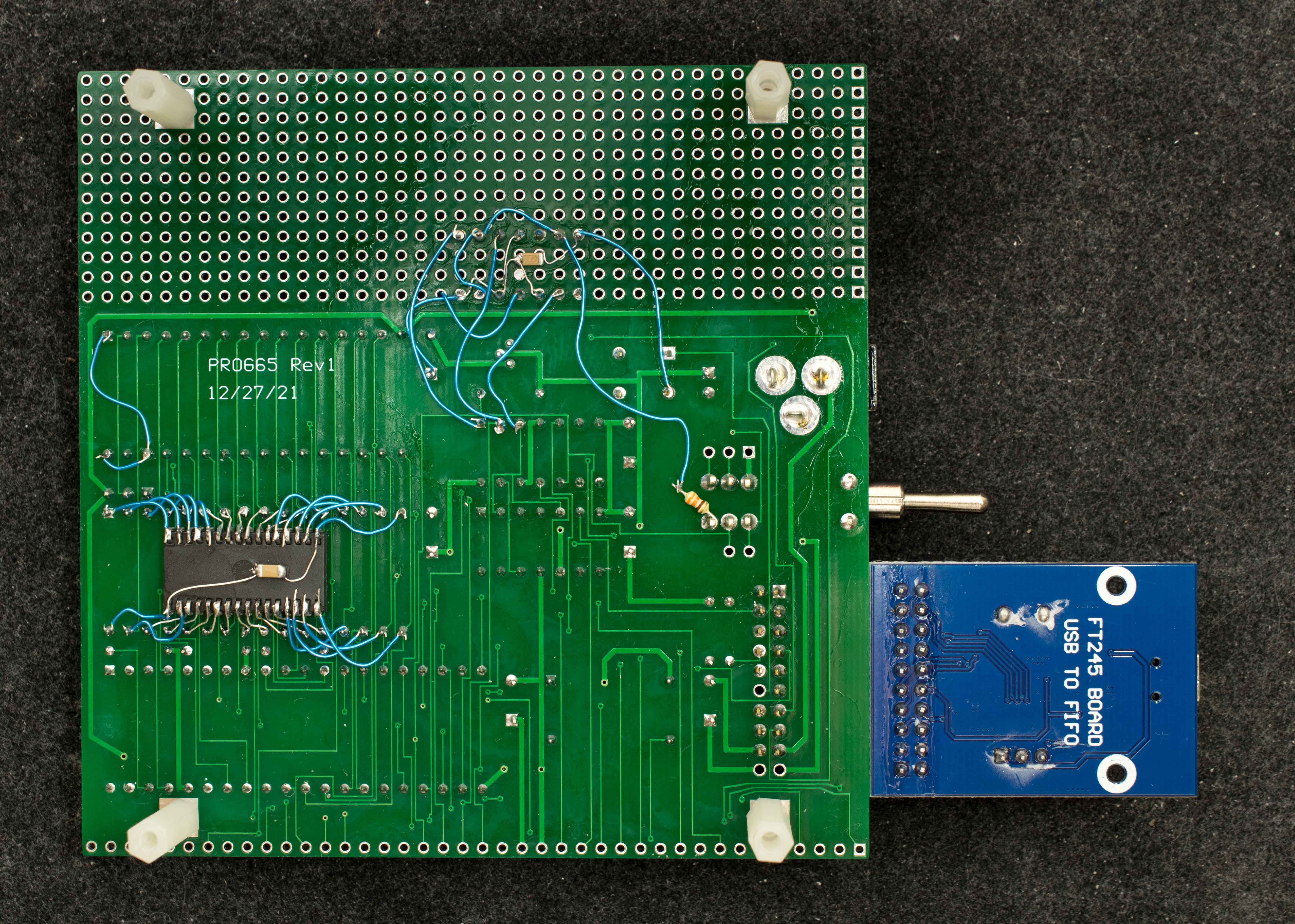 I repeated the design with a more suitable data path. I also ensured that the two most popular EEPROM types can be programmed. Oddly, this didn't make the design wider. It only made the design taller to accommodate 28 pin DIP and 32 pin DIP chips. The discussion about "river routing" aided one tight spot. Overall, I am happy that I got a superior design down to one via.