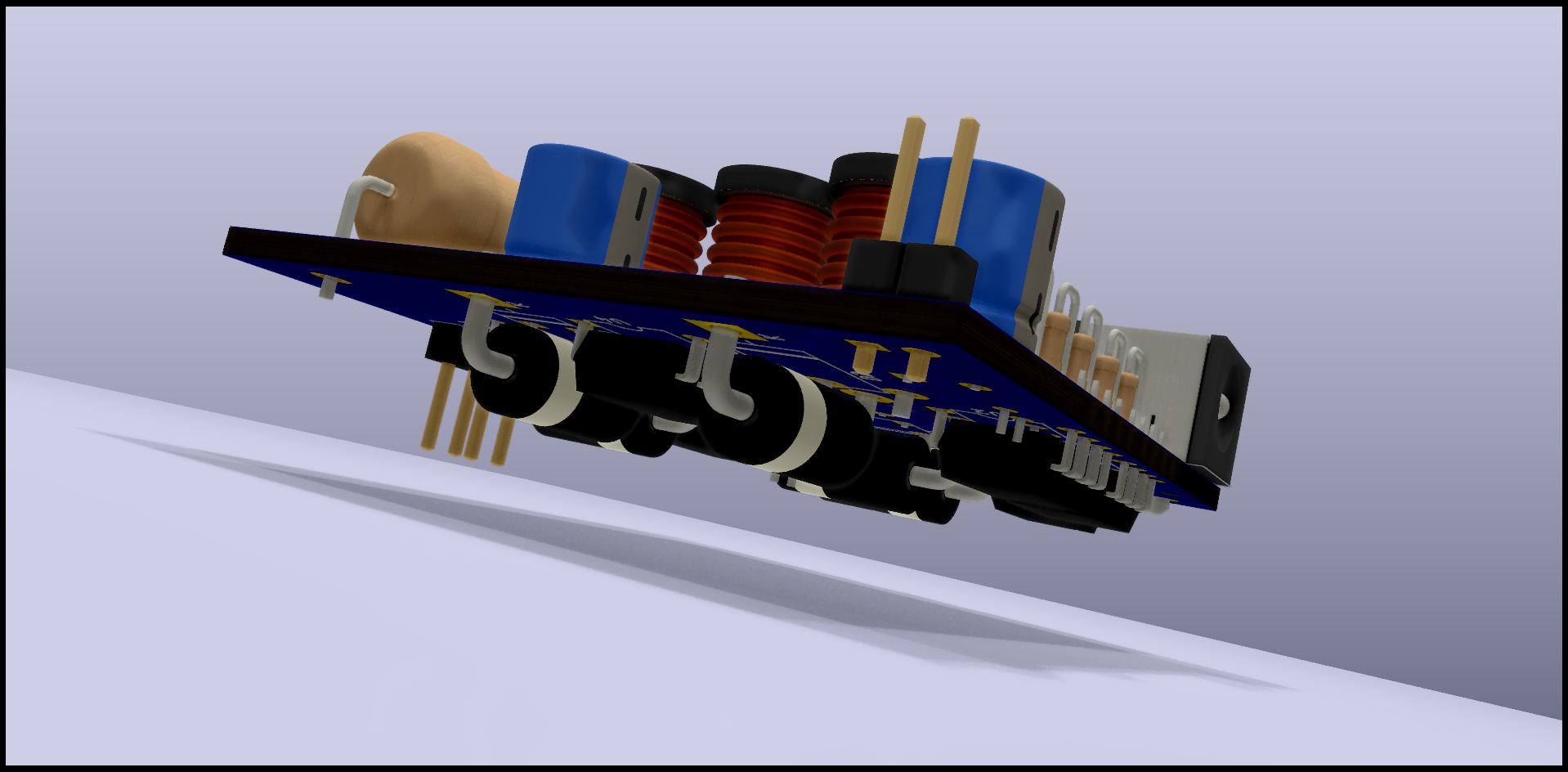 That's not a lot of space to build a combined PSU and battery charger into, with two parallel supply paths being needed so that the unit can be used without disrupting the battery charging logic. Here's what it looks like when you try: Technically, that should work, but with through-hole components on both sides and consequently the solder points for some components being hidden by others, assembling it is likely to be difficult. I'm also not entirely happy with relying entirely on the 10µF low-ESR capacitors I was able to squeeze on there, given how little capacitance the S4's motherboard has on it, and thus how much it must have relied on the original batteries for ballast when running on mains power (another factor possibly contributing to short lifetime).