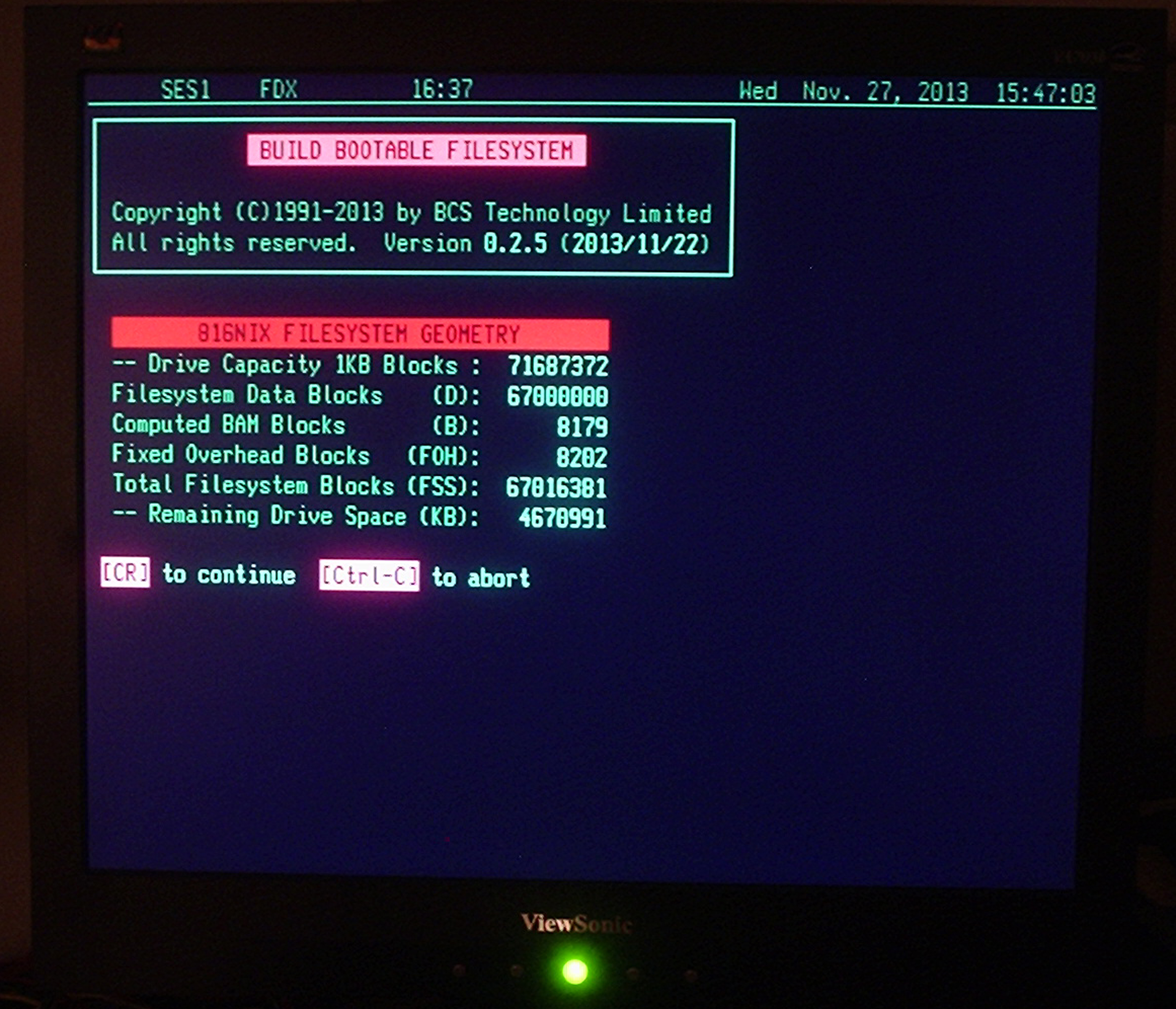 That screen shot in my last post is from software running on POC V1.1. The display is of the parameters calculated from the input value of 67,000,000 data blocks. When [CR] is pressed at the prompt, the filesystem is generated and is theoretically capable of storing files.