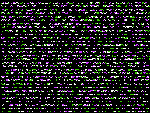 These images are of an Apple ][ hi-res screen after filling the screen approximately 30% full of "random" dots. The one without the ASL seems to have a slightly coarser "texture", but I think either one suits my purposes just fine. Do you (or anyone else) have any further comments before I add it to VTLC02? It's going to have a net cost of nine bytes, but I think the improved quality and slightly improved performance outweigh the cost.