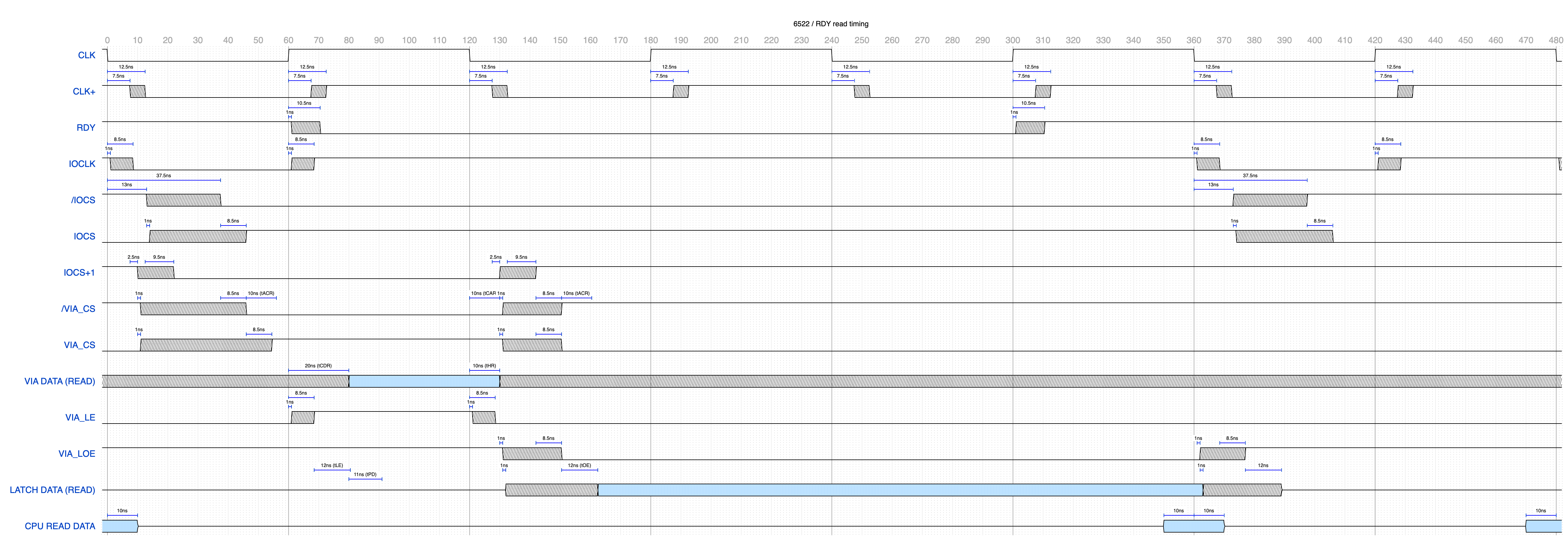 To make use of such a circuit, the rest of the glue logic needs to be adapted. /RD and /WR pulses going to memory need to stay active while RDY is low. Additionally, if using a 65C816, the bank address latch needs to stay closed, and the data bus buffer needs to stay on. Finally, I/O devices such as the 65C21, 65C22 and 65C51 use a direct clock input, and this also needs to stay high while RDY is low. This is to prevent reads and writes to be repeated in a loop between stepping pulses, and for the data bus to remain valid. Of course this messes with the VIA's timers. I think a solution to that can be found by isolating the VIA but I'll talk about that later.