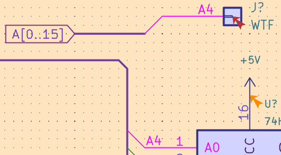 3) label each pin to be attached (I usually do a short stub, but I'm not sure it's absolutely required). These should match the bus e.g. A0, A1 etc