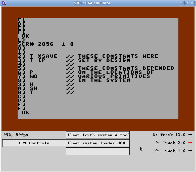 As I said, my current screen editor is the one I've been using for years. I remember one forum member mentioning although my source is in blocks, it has a very vertical format with a great deal of white space to the right. The Commodore 64's 40 column screen is the reason.