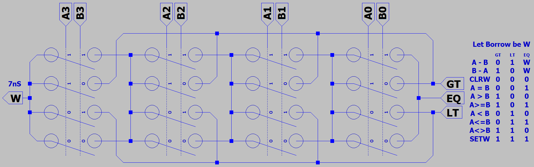 Rather than comparison (Karnaugh 0000 CLR) to produce a byte of borrows.