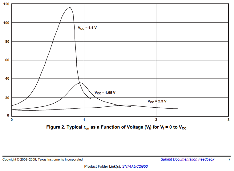 Resistance I've measured. <3 Ohms passing 3.3V under CBT VDD7V.