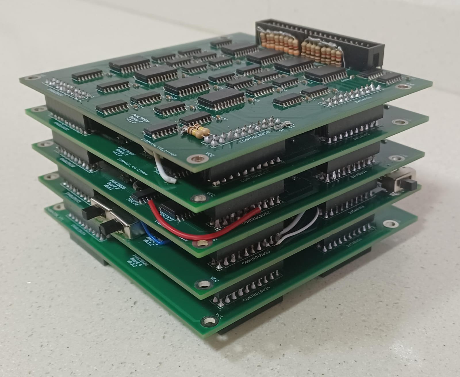 Of course, not everything works. Even though I was showing off my soldering skills on my previous post, I'm pretty sure most of my issues now are build-quality related. I've been having ton of issues with my interPCB connectors from the very beggining, as they never seem to make proper contact... 5 boards, with 60 connections per board, that's a grand total of 300 hundred and, pretty much a single one failing, causes weird and impredictable issues.