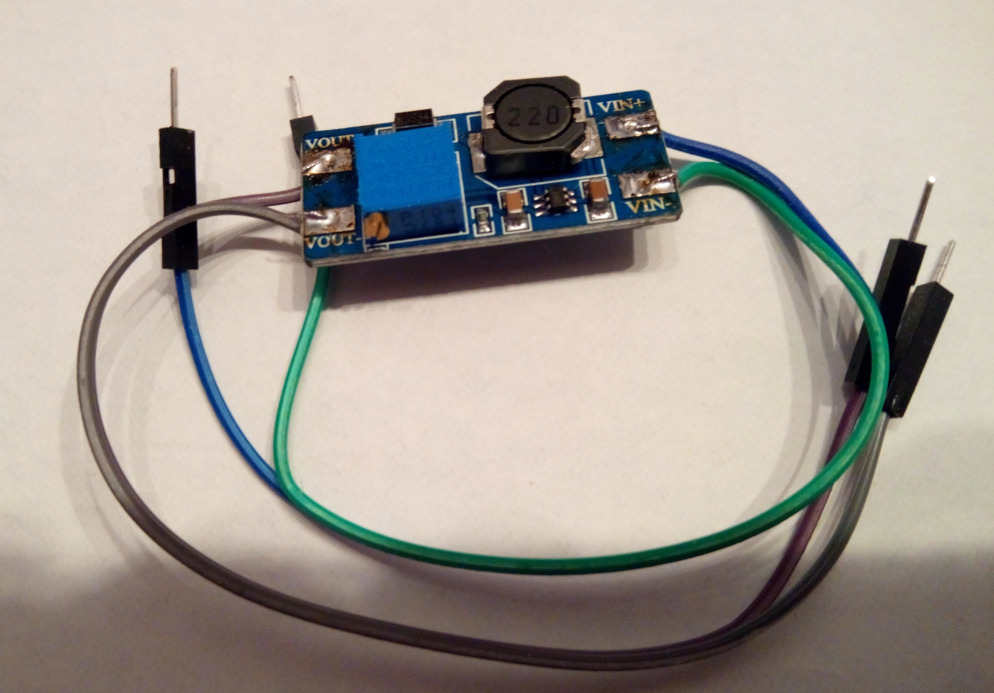 A simple way of providing a suitable 12v on your spaghetti-board is to use an MT3608 step-up module, like this :