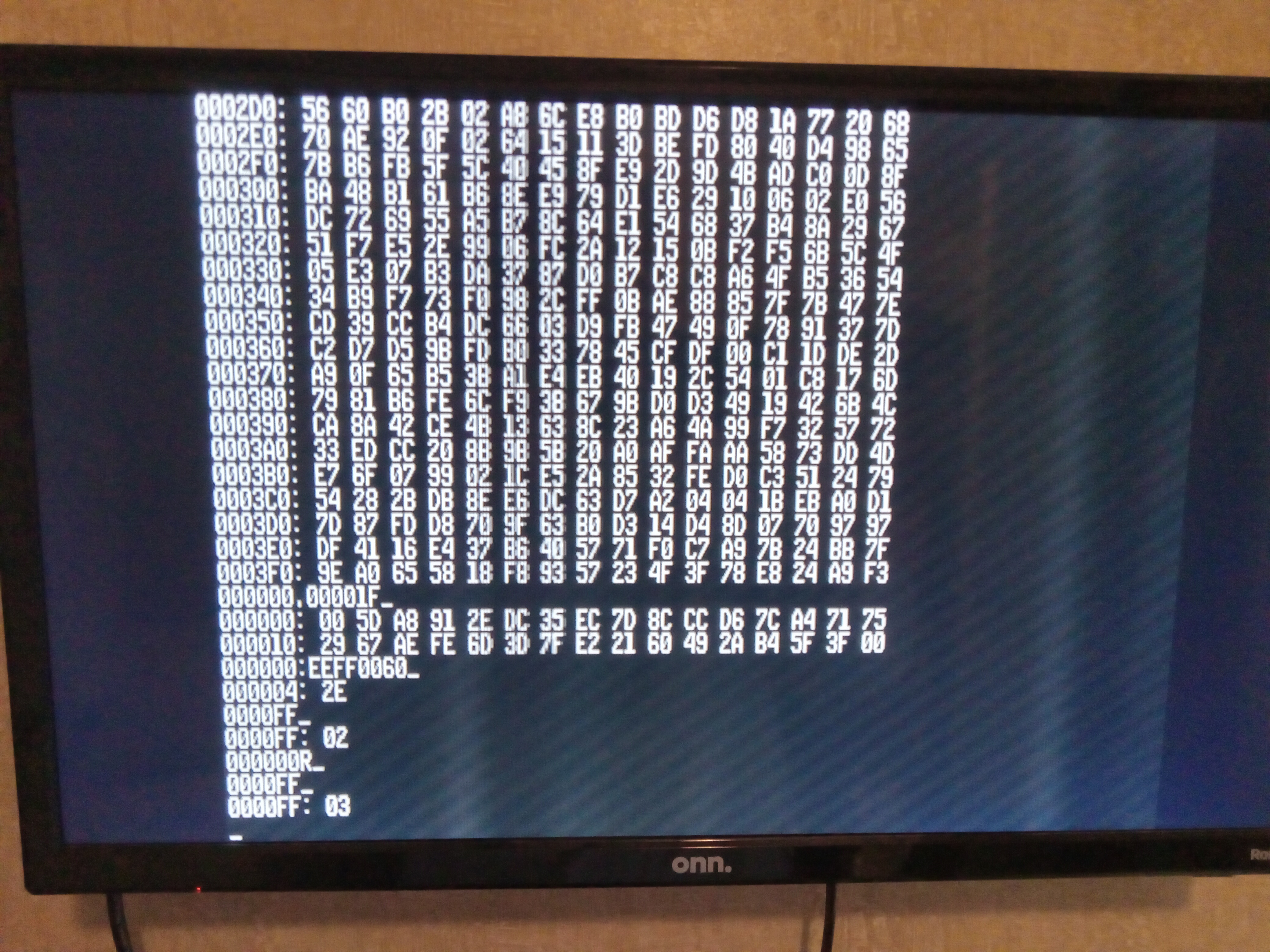 And so the next (and last) thing I want to get rolling right now is the keyboard. And it's not working, probably because the interrupts are doing something very similar. The keyboard works for my fallback monitor, but not in my new demo code, probably for the same reasons: a register is not set correctly. Will be continuing to work on that. Once the keyboard is functioning then I can start to rest, or perhaps just push harder :)