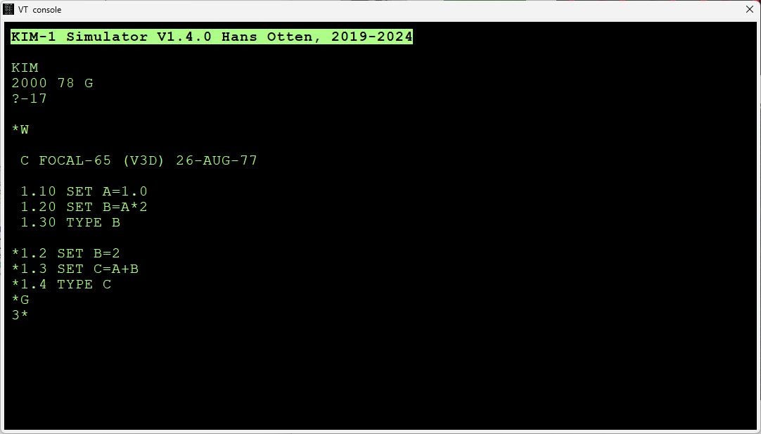 Next I replaced the TIM I/O package with a KIM-1 I/O package and tested that on the KIM-1 Simulator, with success so far. I did not check yet if this is Focal-65E for the kIM-1 yet.