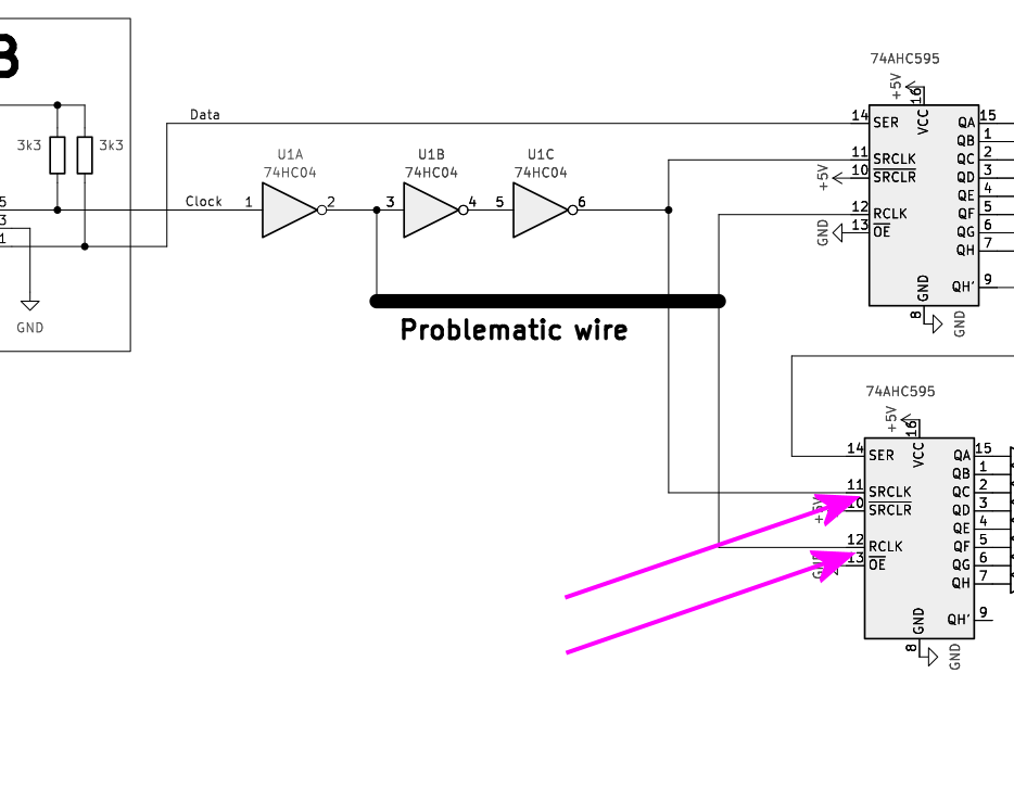 Here are Data and Clock after one NOT gate and "problematic wire"
