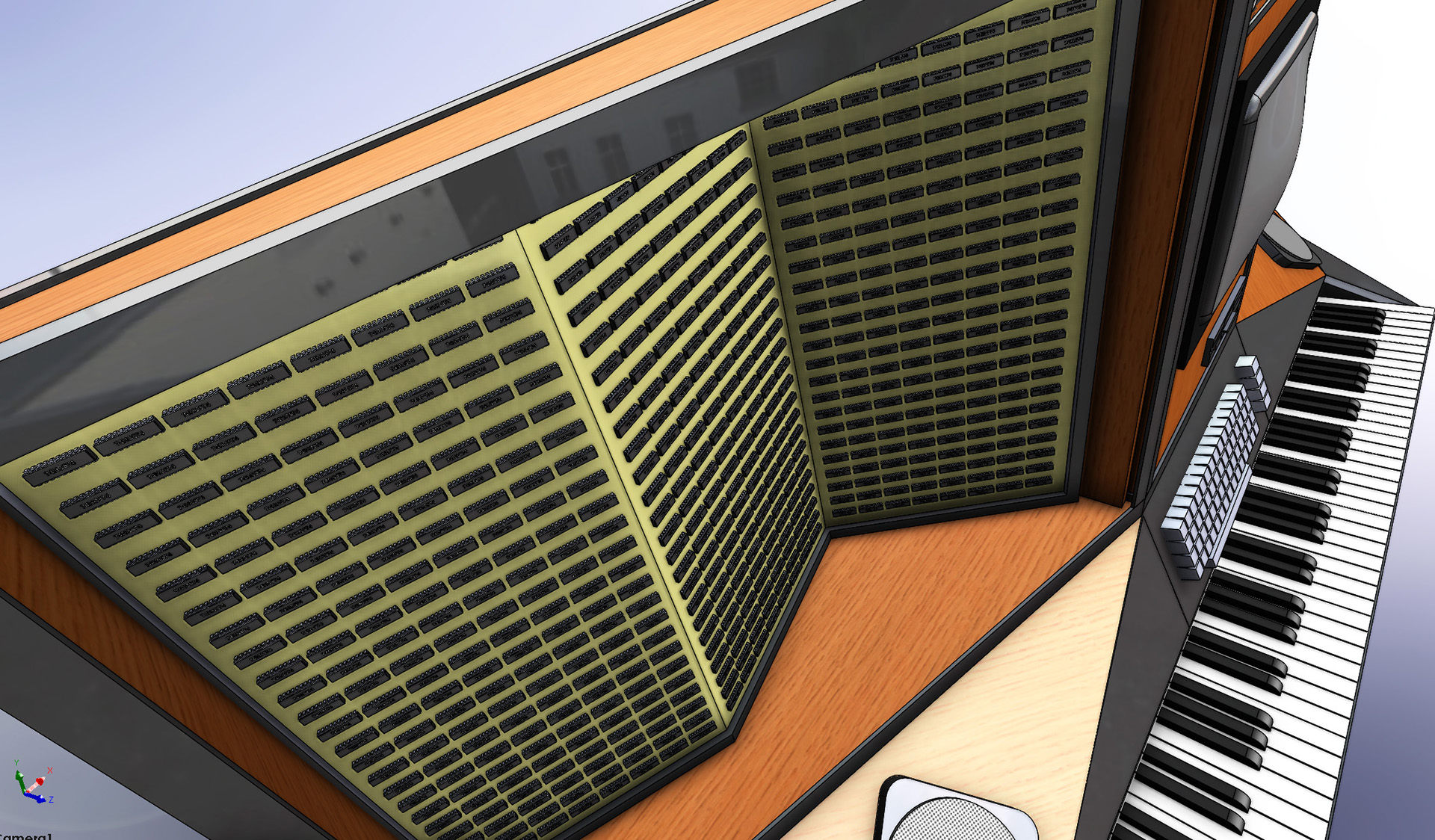 The hard part was making the hinge hidden inside the case. Yeah... it was way more complex that way, but it avoids ugly outside hinges or bolts and makes the entire car hood style keyboard almost hidden until it is activated. Much more of a cool reveal that way!
