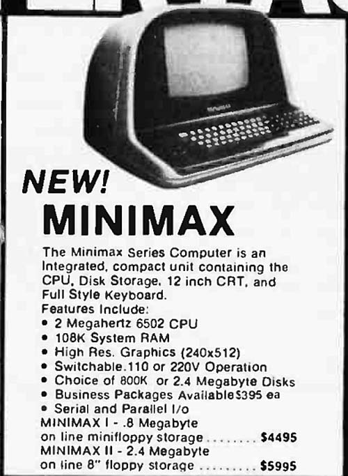 This might have been its disk drive. "The Minimax II is also known as the ACT Series 800."