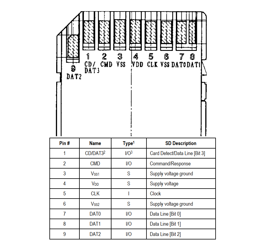 Speaking of CMD, below is an SD card pin-out: