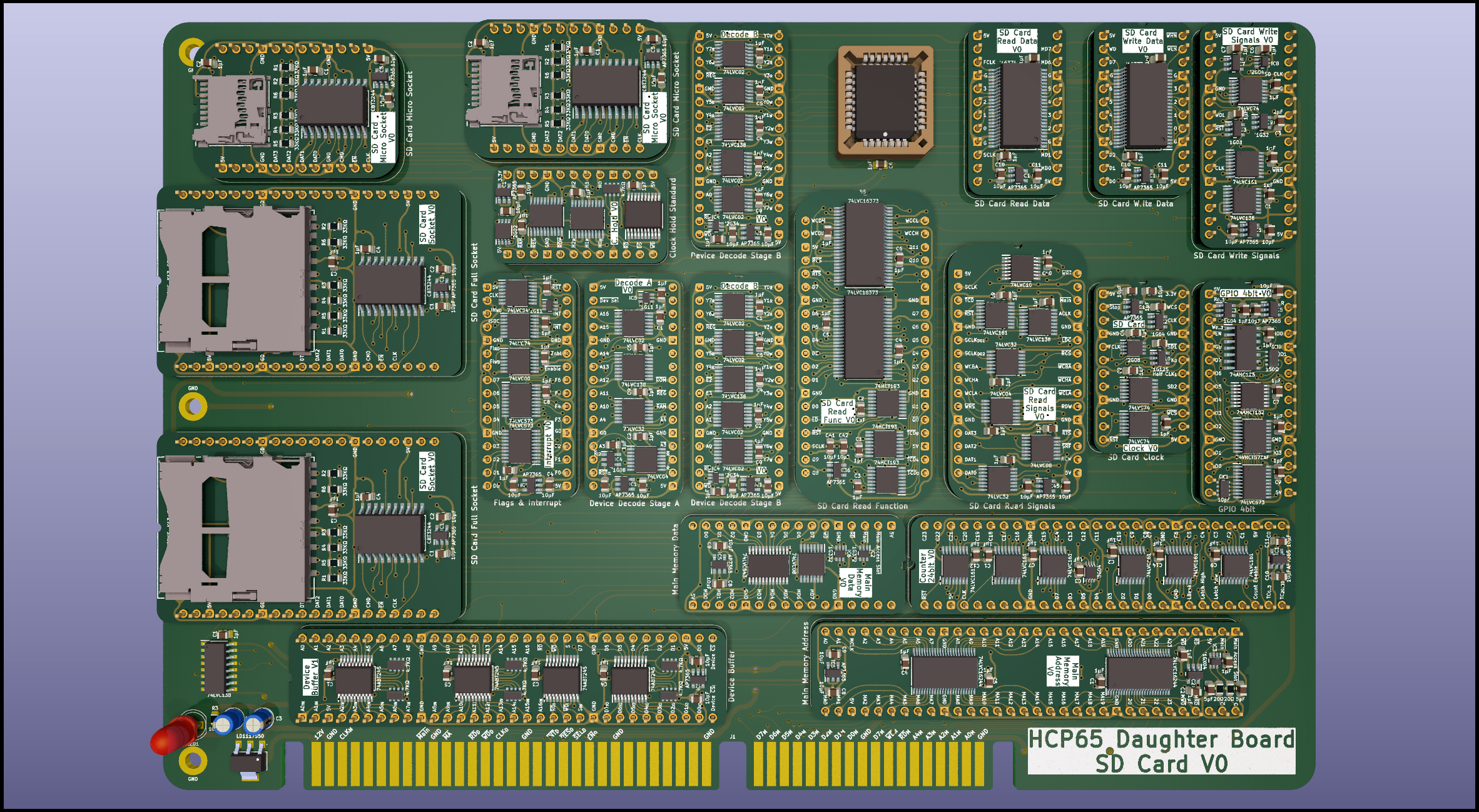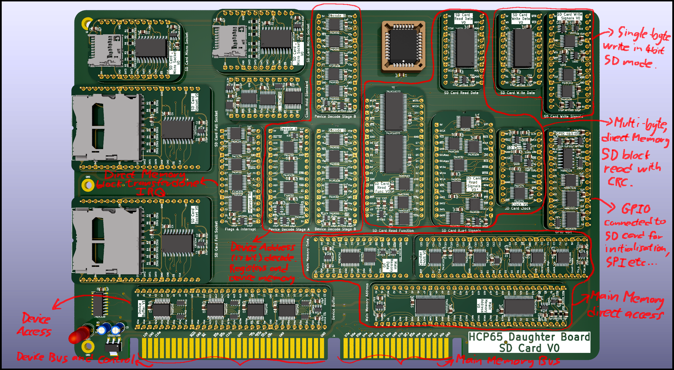 There's been a bit of discussion around SD cards so I decided to dump of where I am with SD card access so far. For those wondering I'm trying not to use programmable ICs and I'm accessing the SD card in 4bit SD mode which is where the absolute proliferation of 74 series ICs comes from.