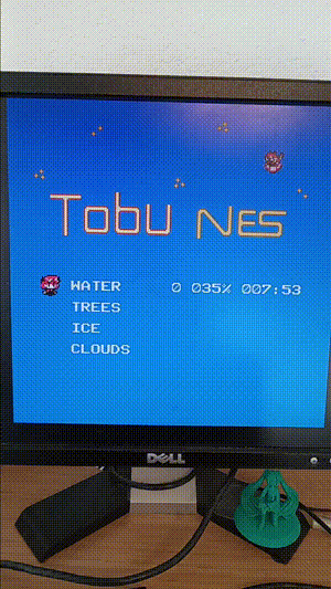 Been working on TobuNES whenever I can between job, kids, church, sleep, etc. I feel like I've made a lot of progress! See attached GIF and (somewhat commented) code.