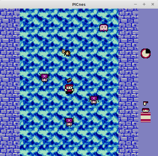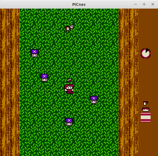 I am using my PICnes emulator, as well as Mesen, for testing purposes. The GIF was taken from my PIC32MZ project running an earlier version of PICnes.
