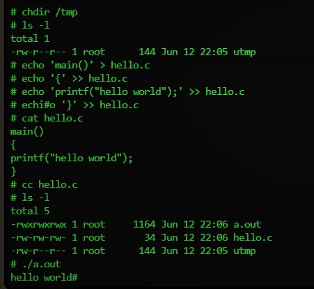 Guess that settles that question. As an aside, look how small the resulting a.out is that the compiler generated.