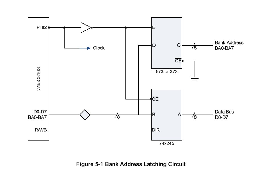 What I'd like to determine is how best to design for the '816. Here's Figure 5-1.I'm sure this circuit has been used successfully many times, but it's somewhat vague. Is it safe to assume that, for the "74x245" bus transceiver, we can use anything from a 74LS245 to a 74BCT245? What if it's a CPLD or some other device that connects to D7-D0? How do we ensure that the bus enable and bus inhibit times are appropriate for avoiding bus collisions with the '816? Here's what we have to go on: