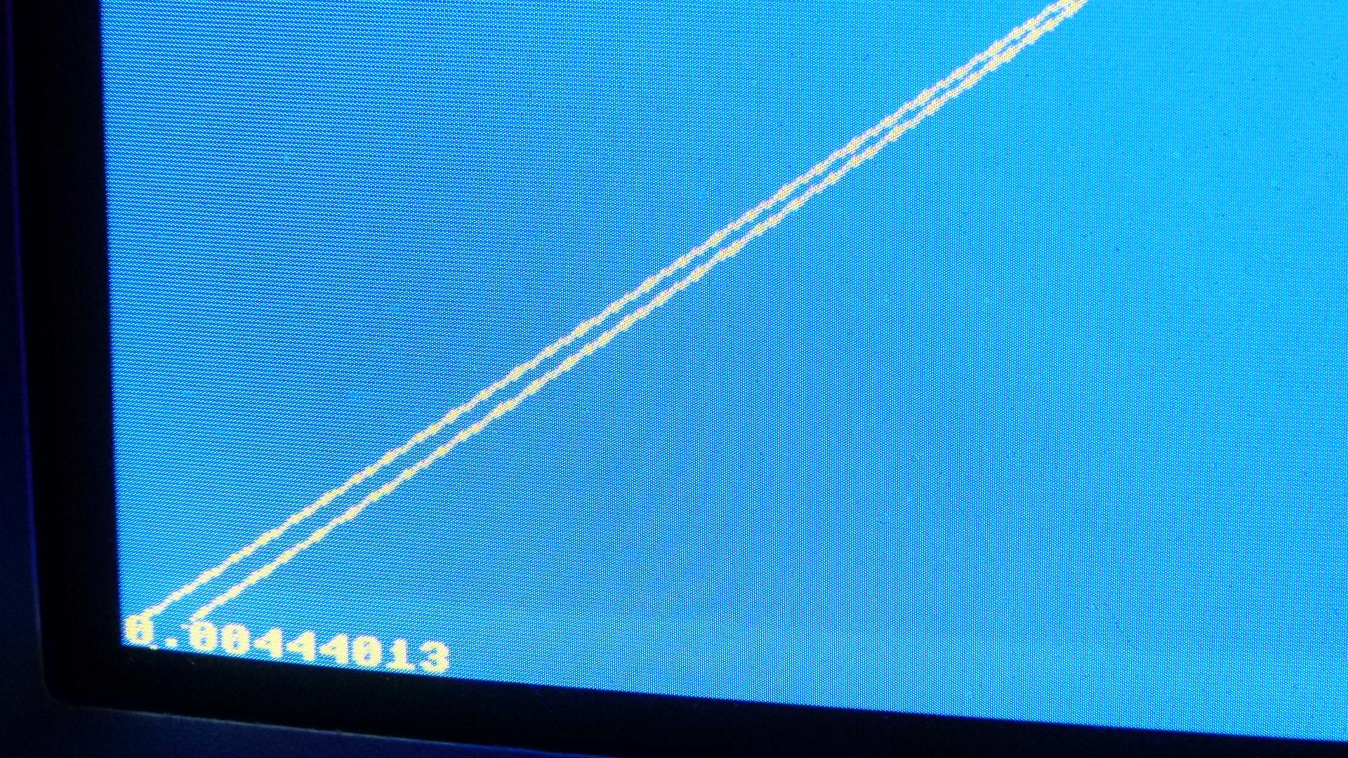 The first 2 lines are still skewed. Now for the lines with the coordinates that have been plotted correctly, they are "sloppier" although cycles for the routine are way down to 444013.