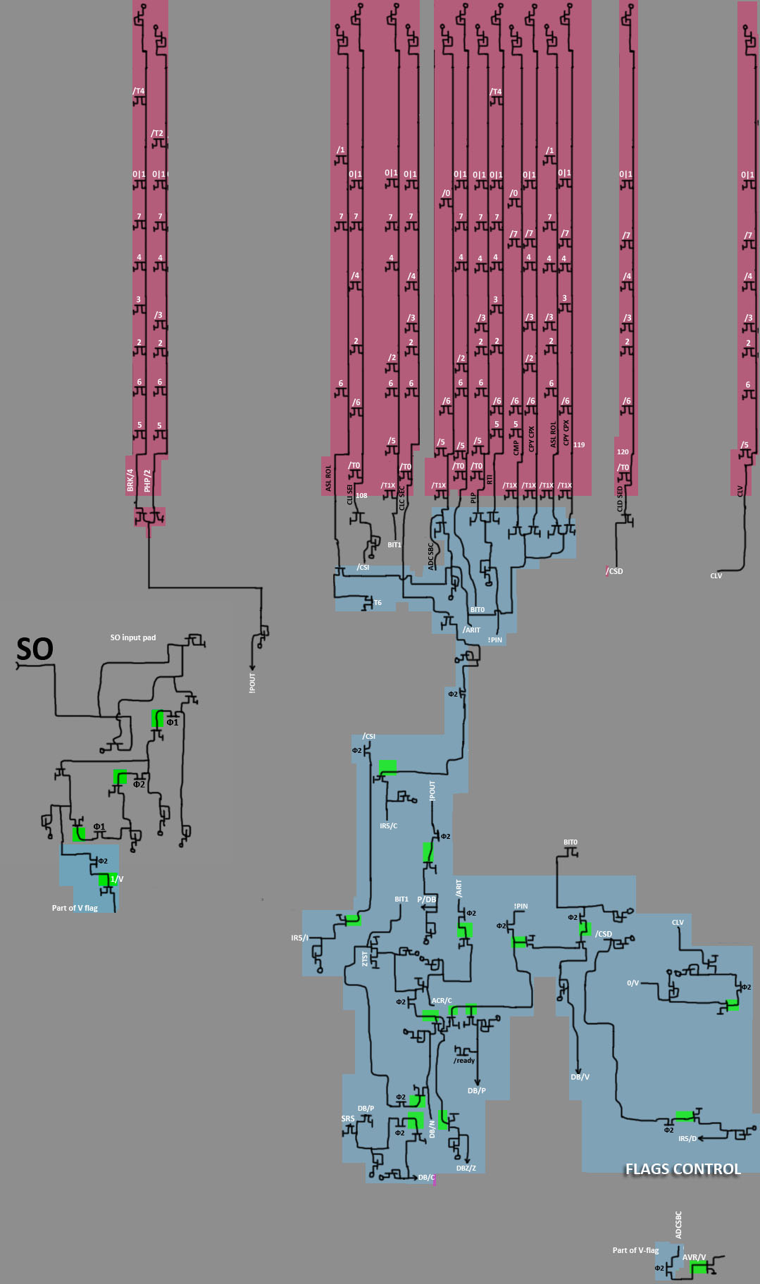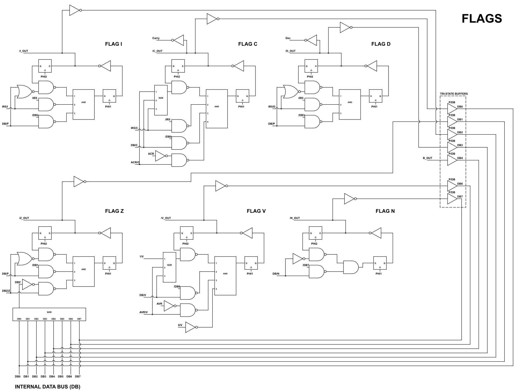 Note, that flags output is in inverted logic, so it gets reinverted back again, before connecting output with internal data bus.