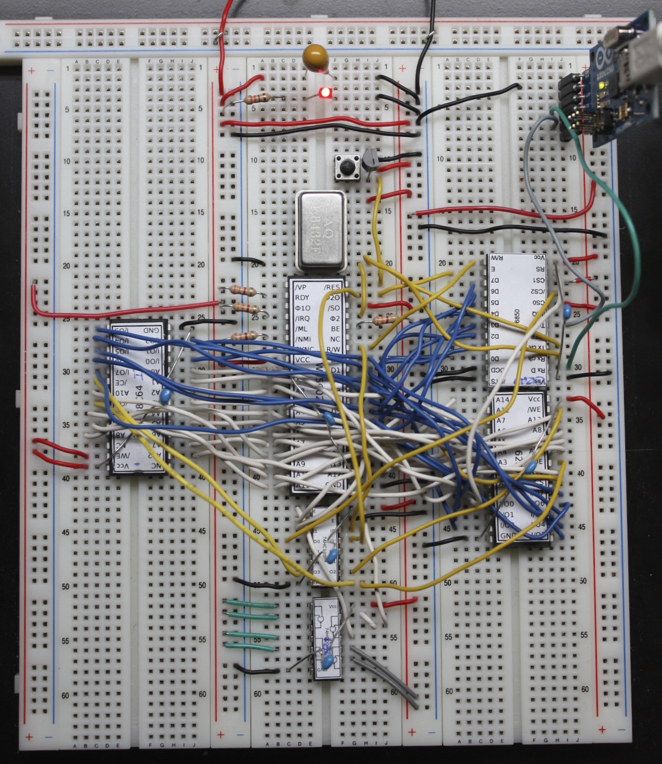 Thanks everybody. EE, I was actually clever enough to buy two of everything, so I can build the finished version in parallel. Really helps with the software, I'm getting to the limits of what I can do with the emulator (WAI for for the main routine will probably be the last straw). This is why the interrupt system will go in last. At least that's the idea.