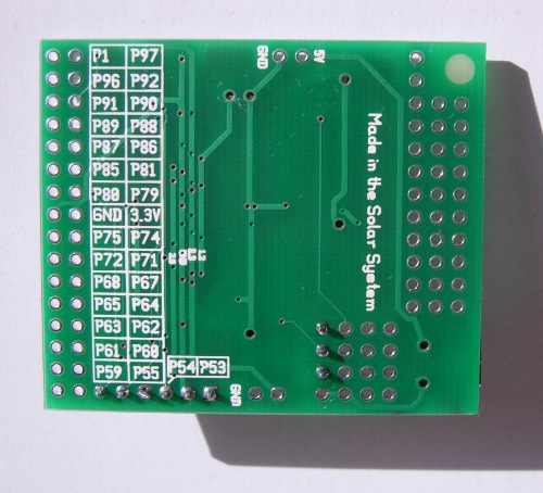 Here is the backside: I try to put a table of pinouts right on the back of my boards. It's much easier than digging through a pile of paper or the filesystem when you need to know how a pin is connected.