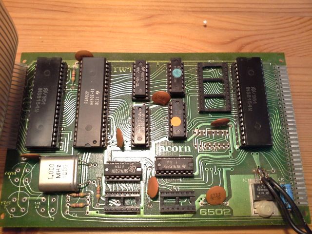 A chance comment I made to an article over at Hacker News led to me being offered a non-working Acorn System 1 for spares or repair for the cost of a donation to charity. Well, it arrived yesterday and it's in pretty good shape. The main board has some logic chips missing and the memory addressing has been hardwired rather than using the address configuration header socket, which has not been fitted. The spectra strip for the display has been repaired in the past and a second wire is broken, but that's an easy fix.