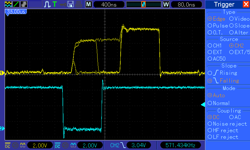 As we can see, the signal level when driven by that NMOS 9929 is just slighty above 4V, so apparently WDC safe.