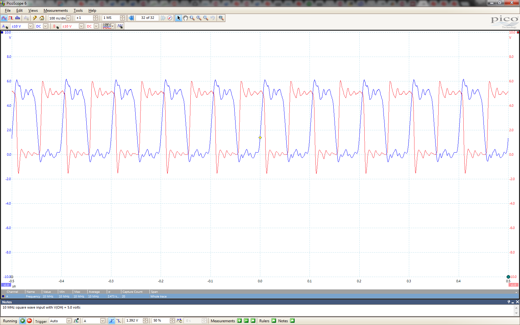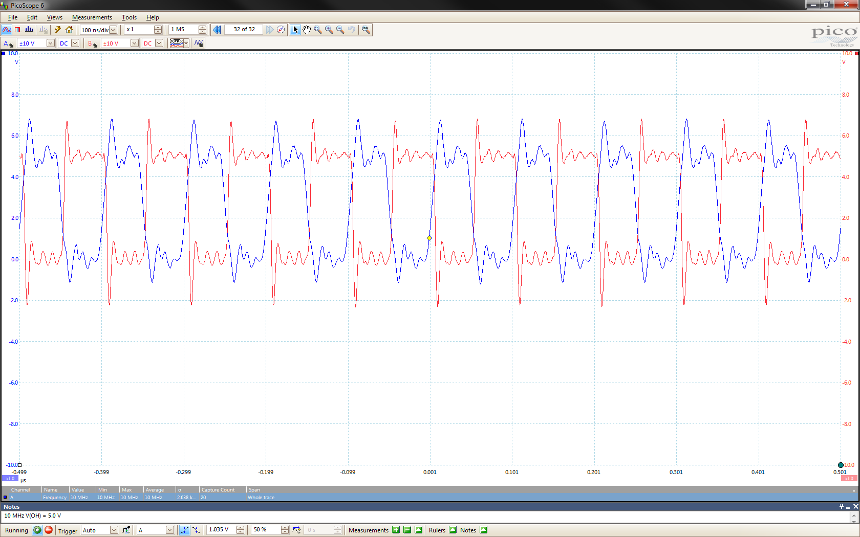 As far as I can tell, the HC04 I was using switched fine at 10 MHz (the 3325A won't generate square waves above 10 MHz so I didn't try to go higher for this quick experiment). This goes some way towards explaining why most people don't have trouble interfacing TTL to 5V CMOS logic at lower frequencies.